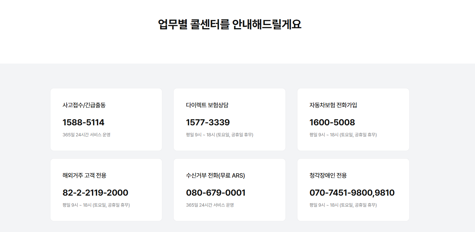 | 4번 | 보험금 청구 및 기타 문의 (자동차 외 상품) |