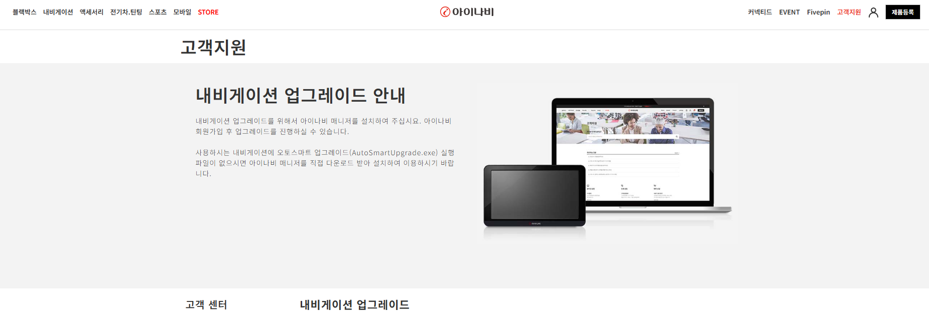 - 아이나비 공식 홈페이지에서는 전용 프로그램을 통해 무료 업그레이드 가능