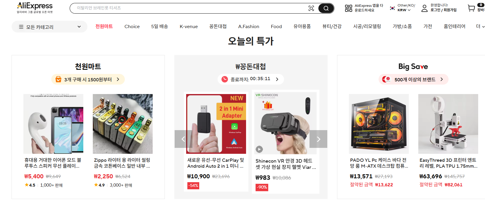 - 알리 익스프레스 앱 또는 웹사이트 접속