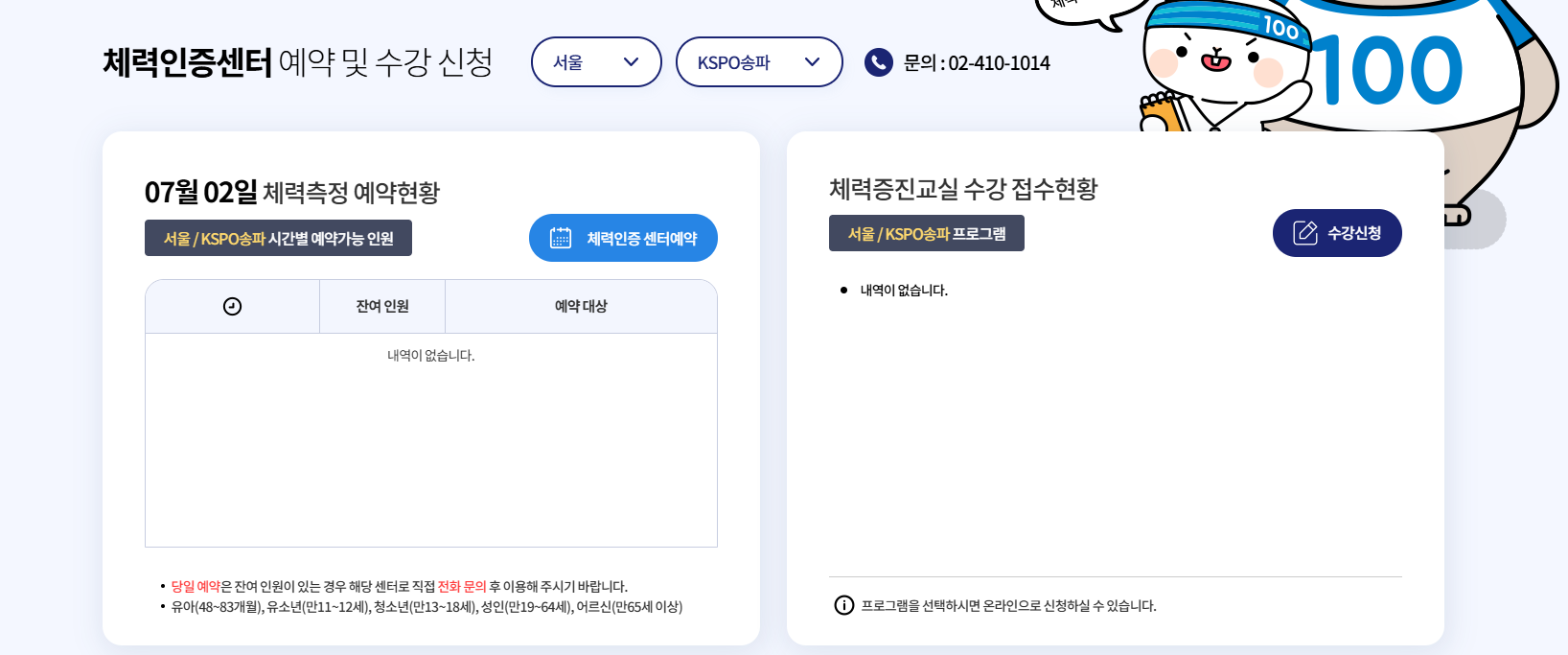 국민체력100 체력인증센터 홈페이지 이용 팁